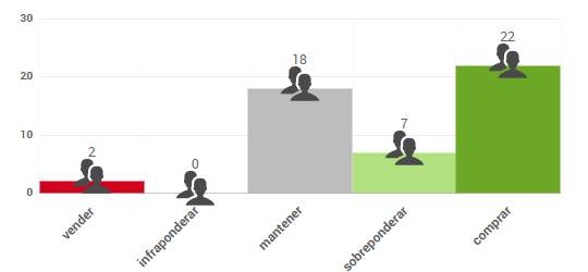 Según el consenso de analistas que recoge FactSet, el precio objetivo promedio se sitúa en 292 $, lo que supondría un potencial de revalorización del 13%. Las opiniones de los analistas que publica FactSet se distribuyen de la siguiente forma: