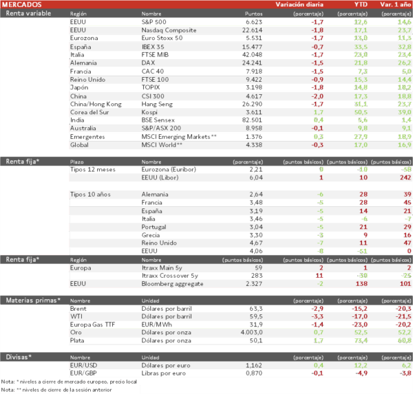 - El Treasury cae 8 pb hasta 4,06%.
