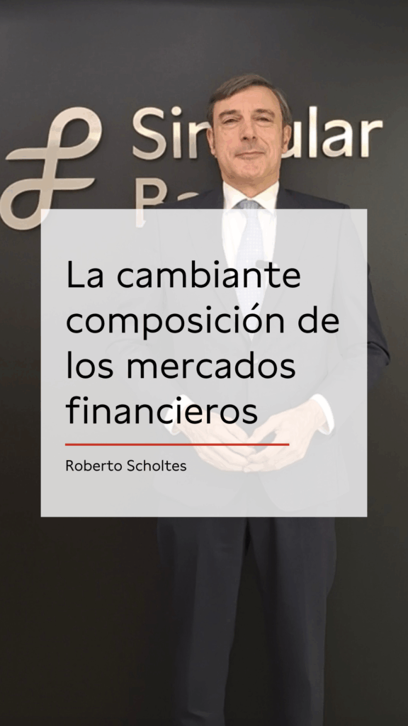 En este video, Roberto Scholtes, CFA, Jefe de Estrategia de Singular Bank, comenta cómo han cambiado en los últimos años el valor de los activos financieros cotizados respecto al PIB, y la composición sectorial de las bolsas mundiales, haciendo que los flujos financieros ganen relevancia frente a las dinámicas económicas, y que explica el gran protagonismo del sector tecnológico.