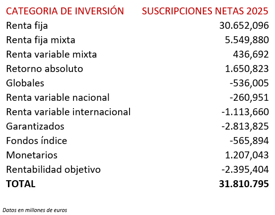 Pero no todas las categorías han suscitado el mismo interés. La renta fija y la renta fija mixta han sido los claros ganadores. Esta tendencia parece lógica, teniendo en cuenta las múltiples incertidumbres que han rodeado los mercados (política arancelaria de Trump, conflictos geopolíticos…) y las altas valoraciones de algunos sectores de la renta variable. Esto lleva a que los inversores consideren que el binomio rentabilidad-riesgo de ciertos segmentos de renta fija se encuentra en niveles más atractivos.