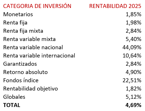 En 2025, se dieron varias circunstancias que favorecieron que los fondos de inversión se convirtieran en uno de los destinos preferidos por los inversores: rentabilidades positivas en todo tipo de activos, pérdida de atractivo de depósitos y cuentas remuneradas tras las bajadas de tipos de interés por parte de los bancos centrales…