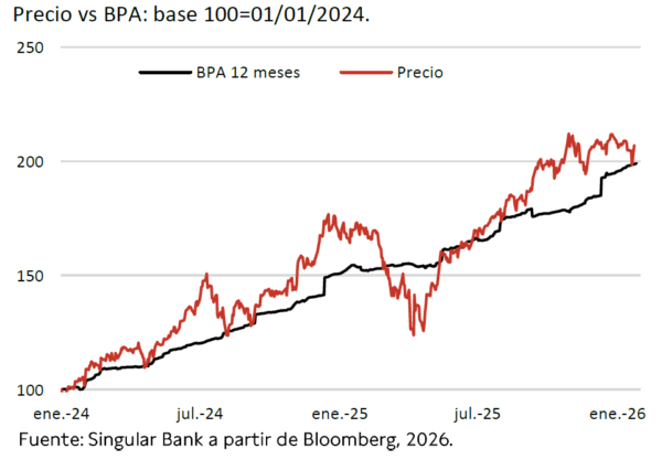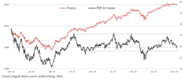 En este contexto, la eventual confirmación de unos buenos resultados en el 4T y unas guías para 2026 en línea con las previsiones podrían apoyar la continuidad de la tendencia a medio plazo.