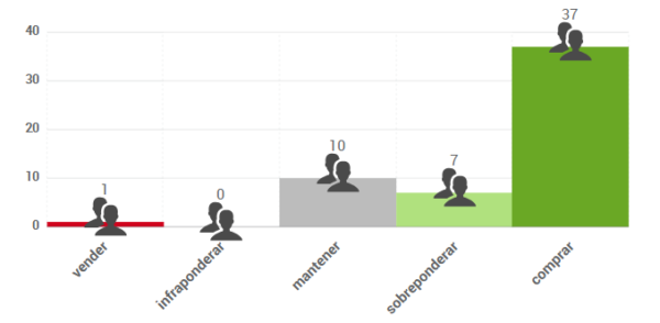 Según el consenso de analistas que recoge FactSet, el precio objetivo promedio se sitúa en 224,18 $, lo que supondría un potencial de revalorización del 37%. Las opiniones de los analistas que publica FactSet se distribuyen de la siguiente forma: